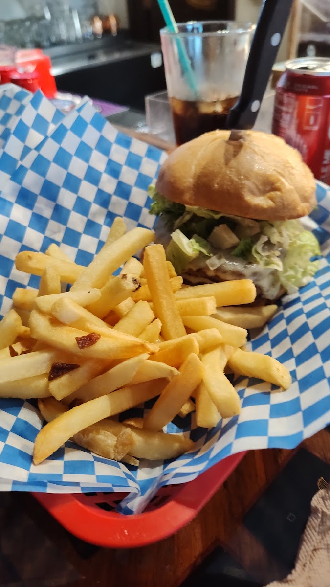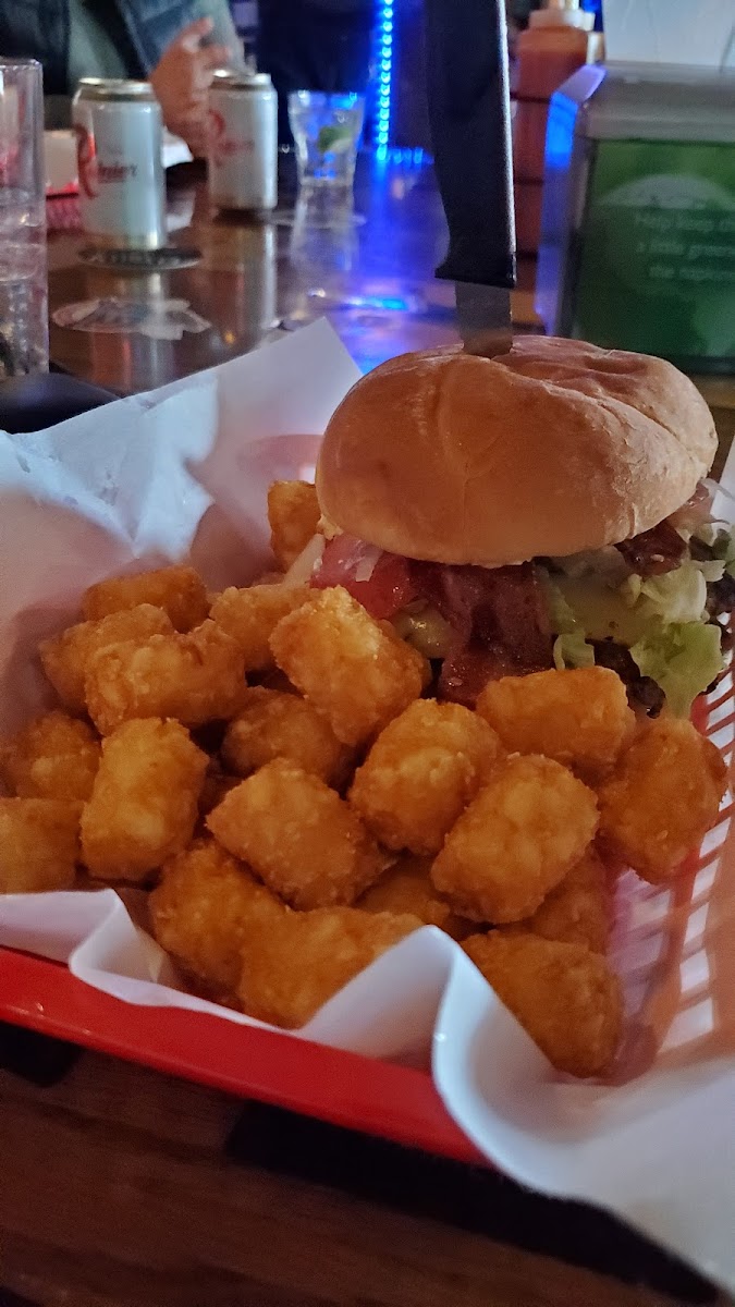Ordered a Rollies Burger with onion rings and it was delicious. The bread did not crumble or fall apart. The bacon was thick and well cooked. The burger patty had the right amount of flavor and it was juicy. Highly recommend the burgers. Got two beers and a shot